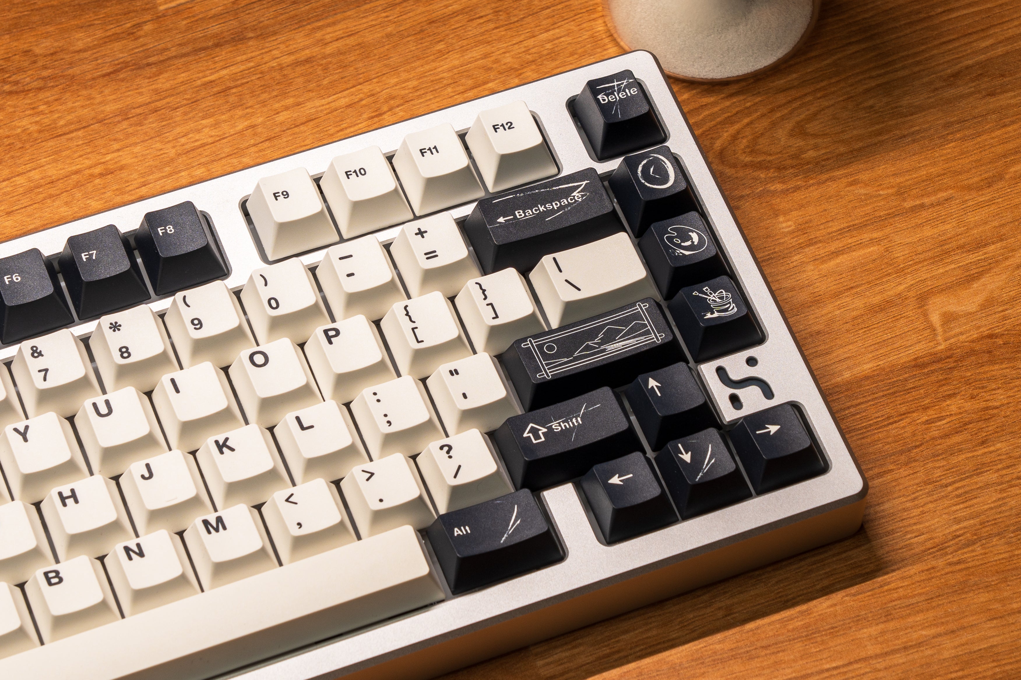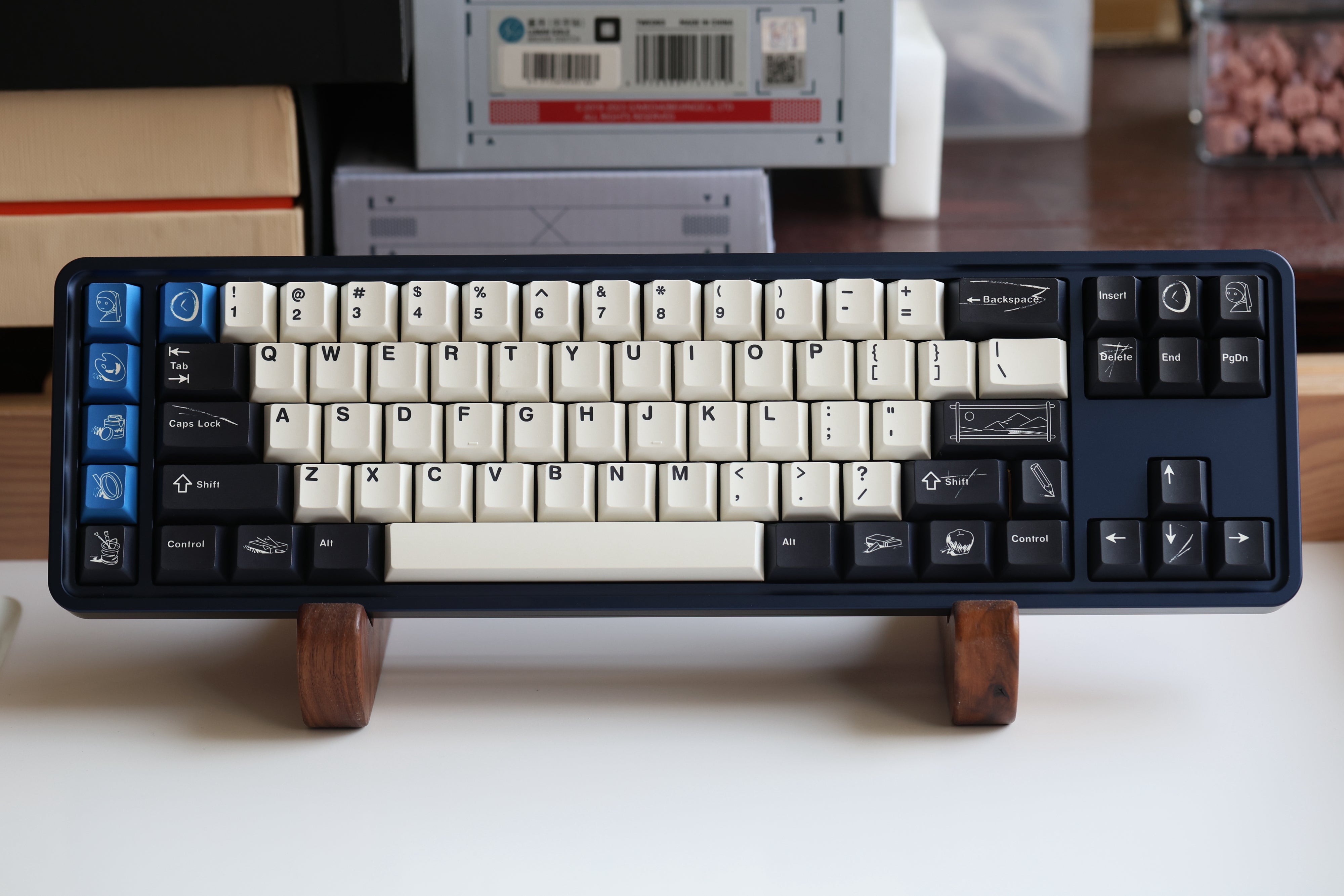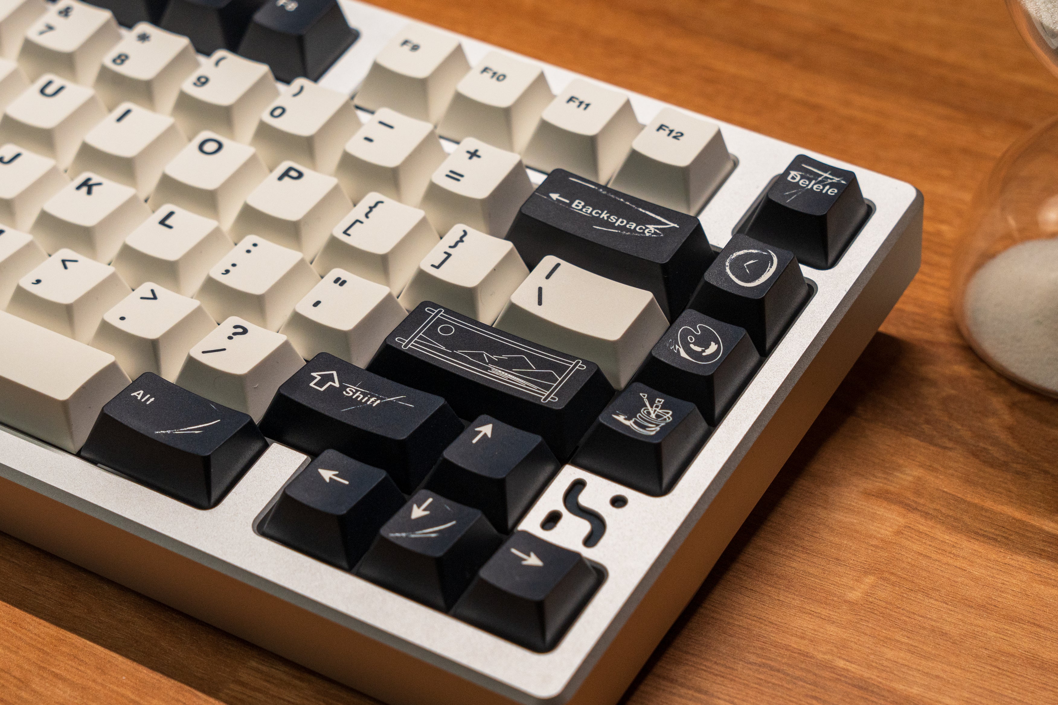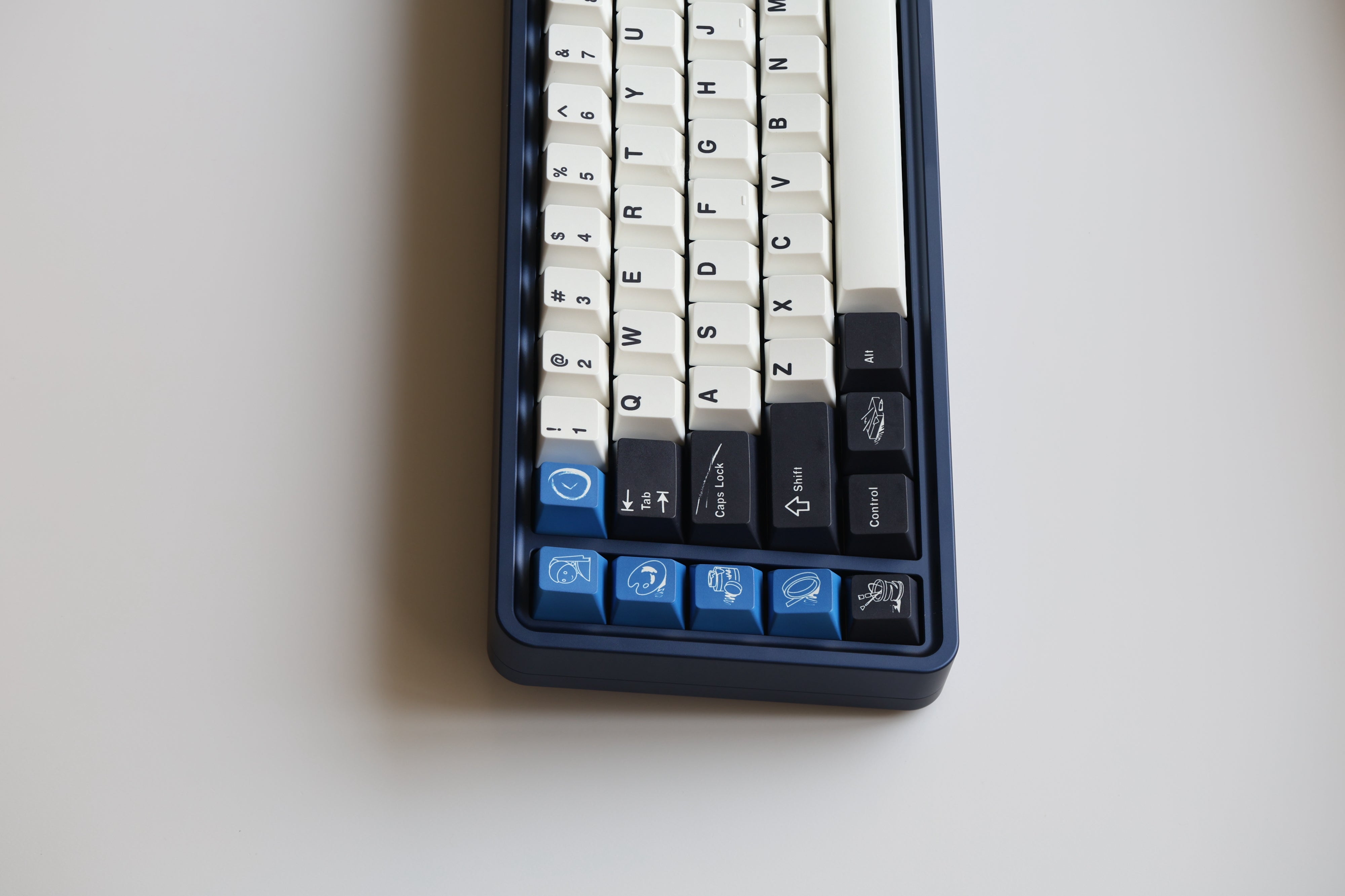 The design of this keycap set is inspired by the brushstrokes and brilliant colors left on canvas by master artists. The charcoal black and warm white keycaps are intertwined, just like the contrast on the canvas, and the ultramarine blue, the oldest color in nature, is dotted in it as if it is the painter's unique signature! This unique color scheme gives the keyboard a completely new look, as if you are creating a beautiful painting every time you press it.