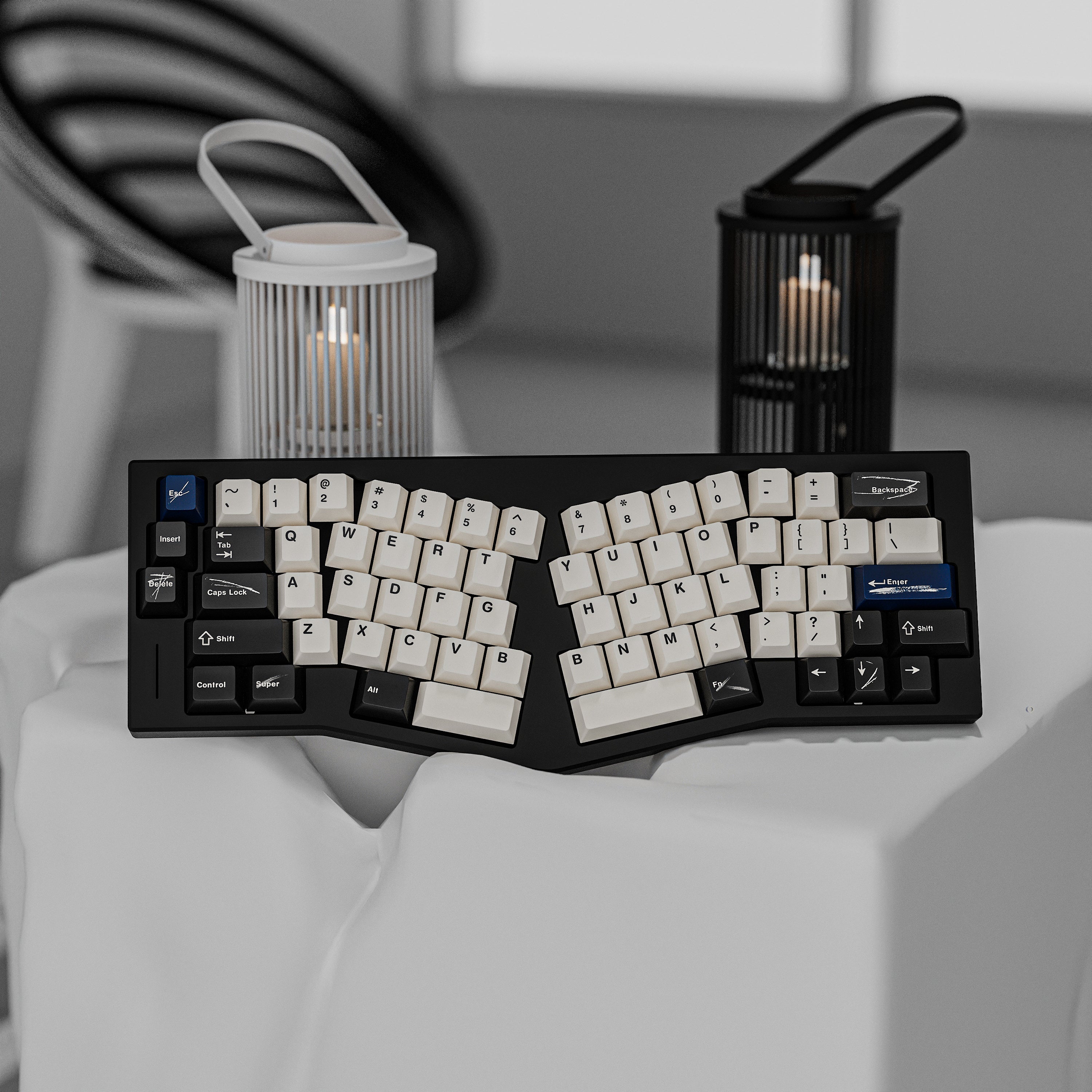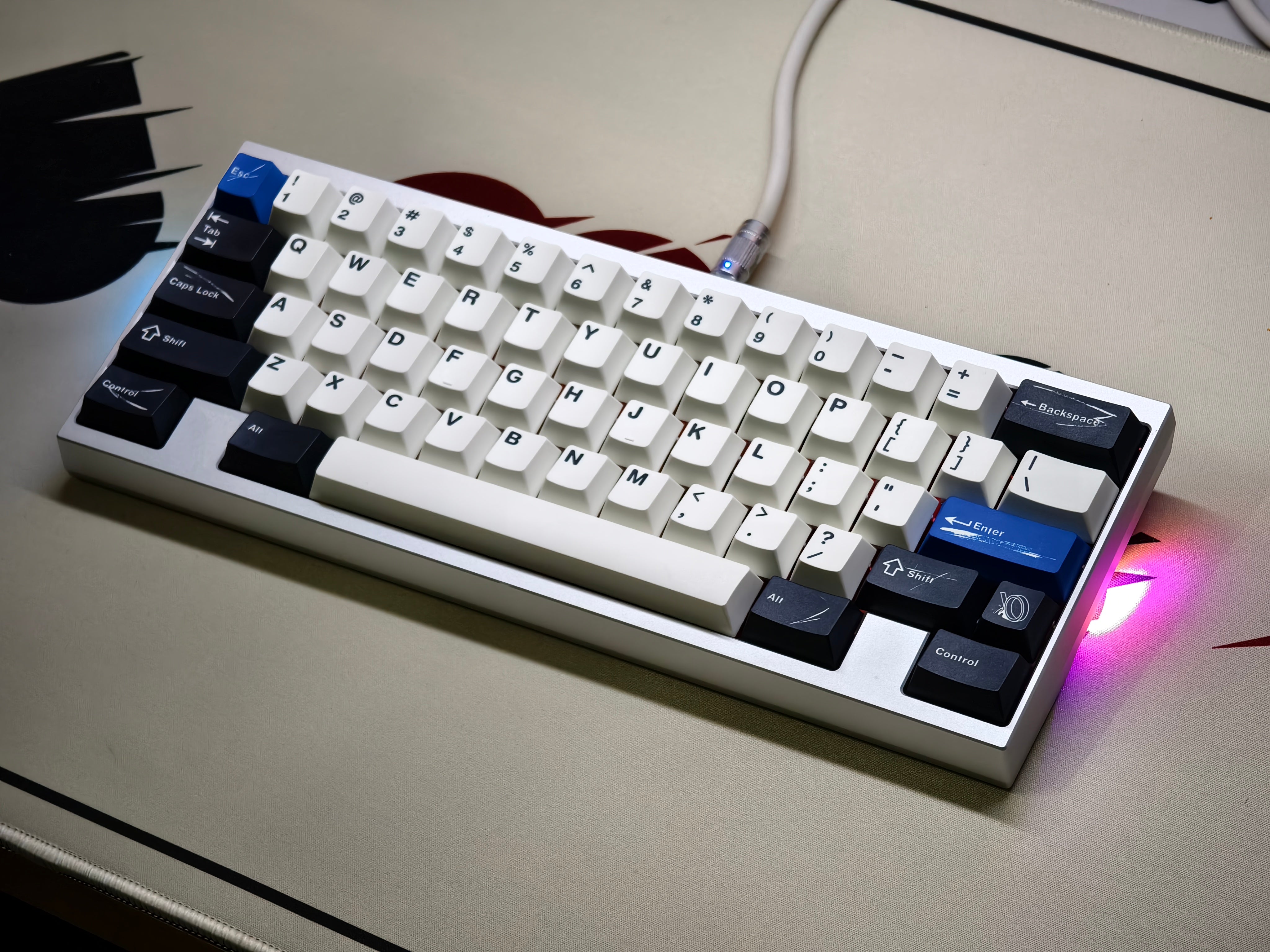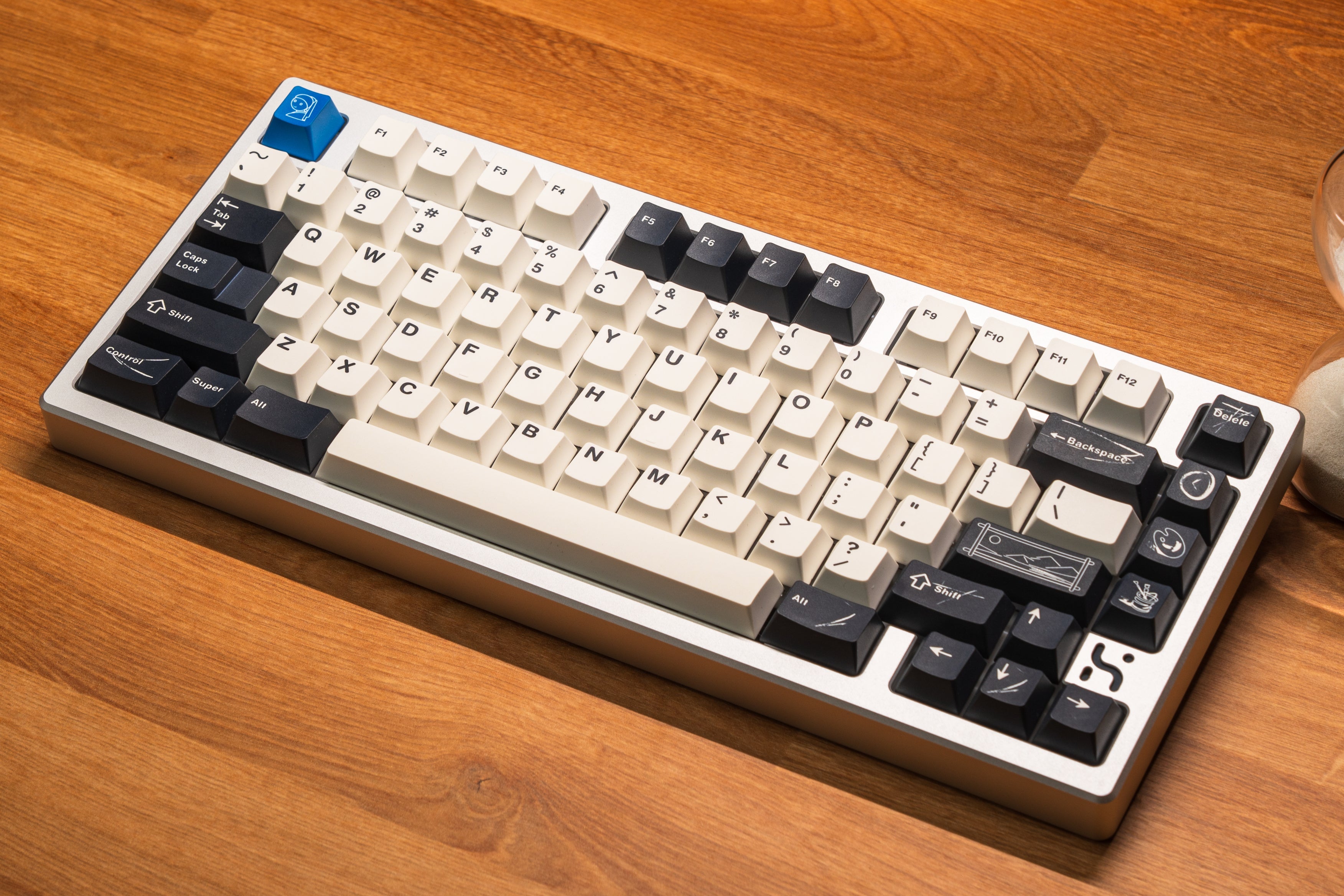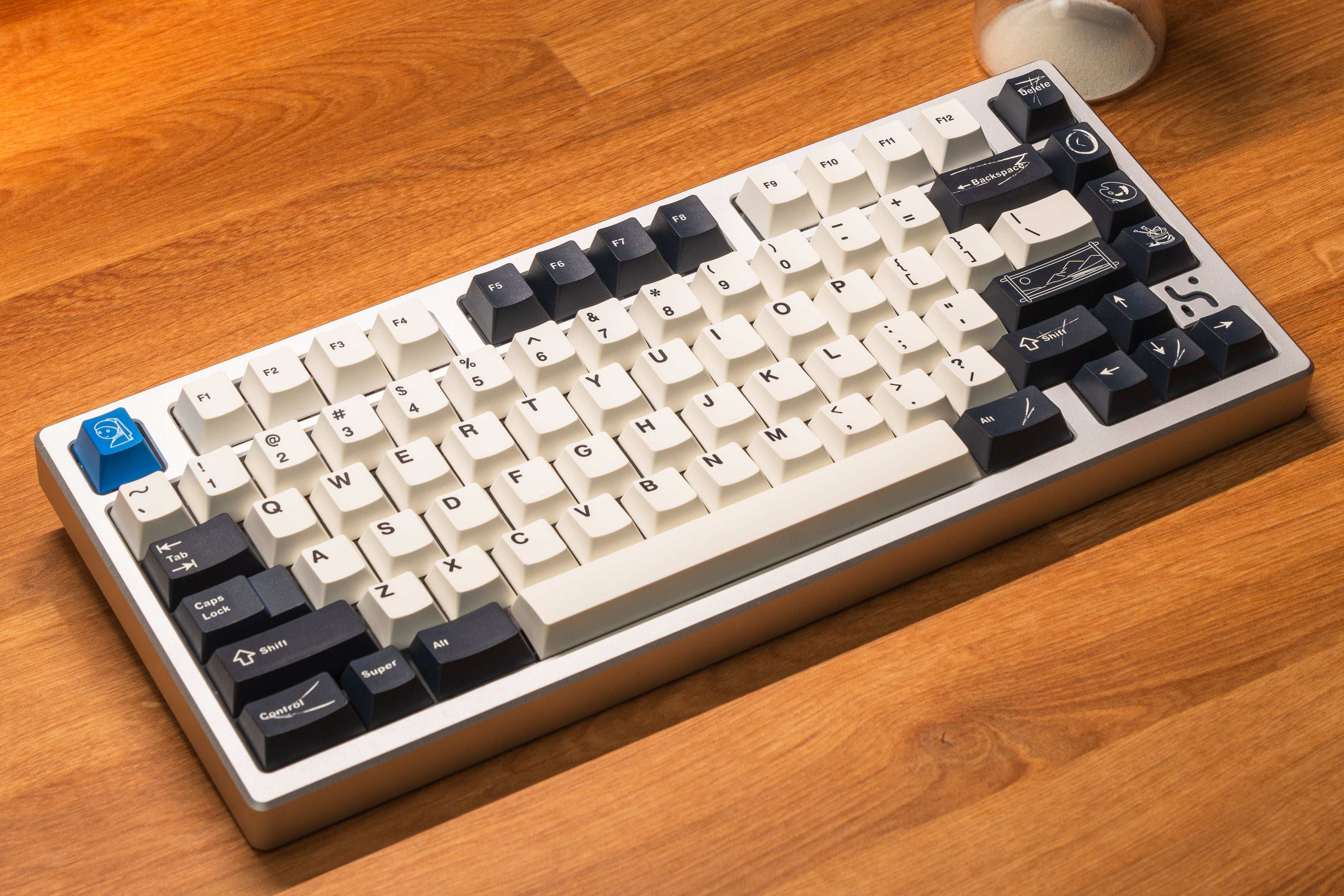 The design of this keycap set is inspired by the brushstrokes and brilliant colors left on canvas by master artists. The charcoal black and warm white keycaps are intertwined, just like the contrast on the canvas, and the ultramarine blue, the oldest color in nature, is dotted in it as if it is the painter's unique signature! This unique color scheme gives the keyboard a completely new look, as if you are creating a beautiful painting every time you press it.